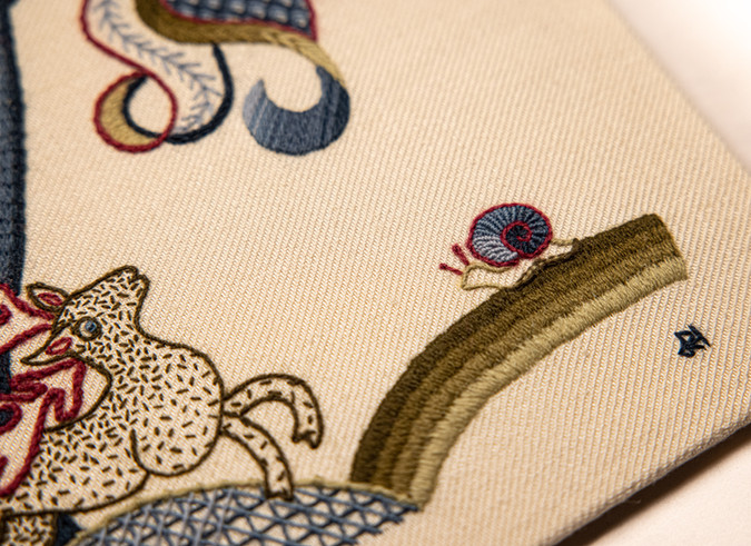 The very first technique covered by all RSN students, Jacobean Crewelwork is traditionally worked in 2 ply crewel wool onto a linen twill ground fabric using two colour ranges and one accent colour. A great technique for exploring new stitches and textures.